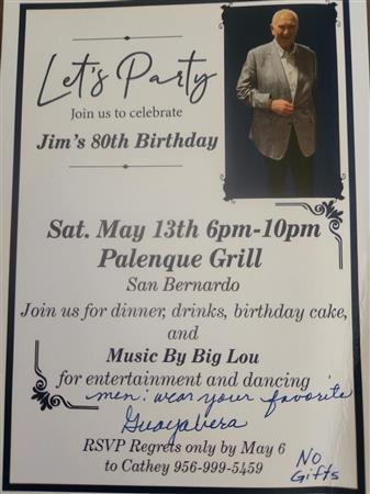 Many Laredo Daybreak Rotary club members celebrated Jim Moore's 80th Birthday on Saturday, May 13, 2023