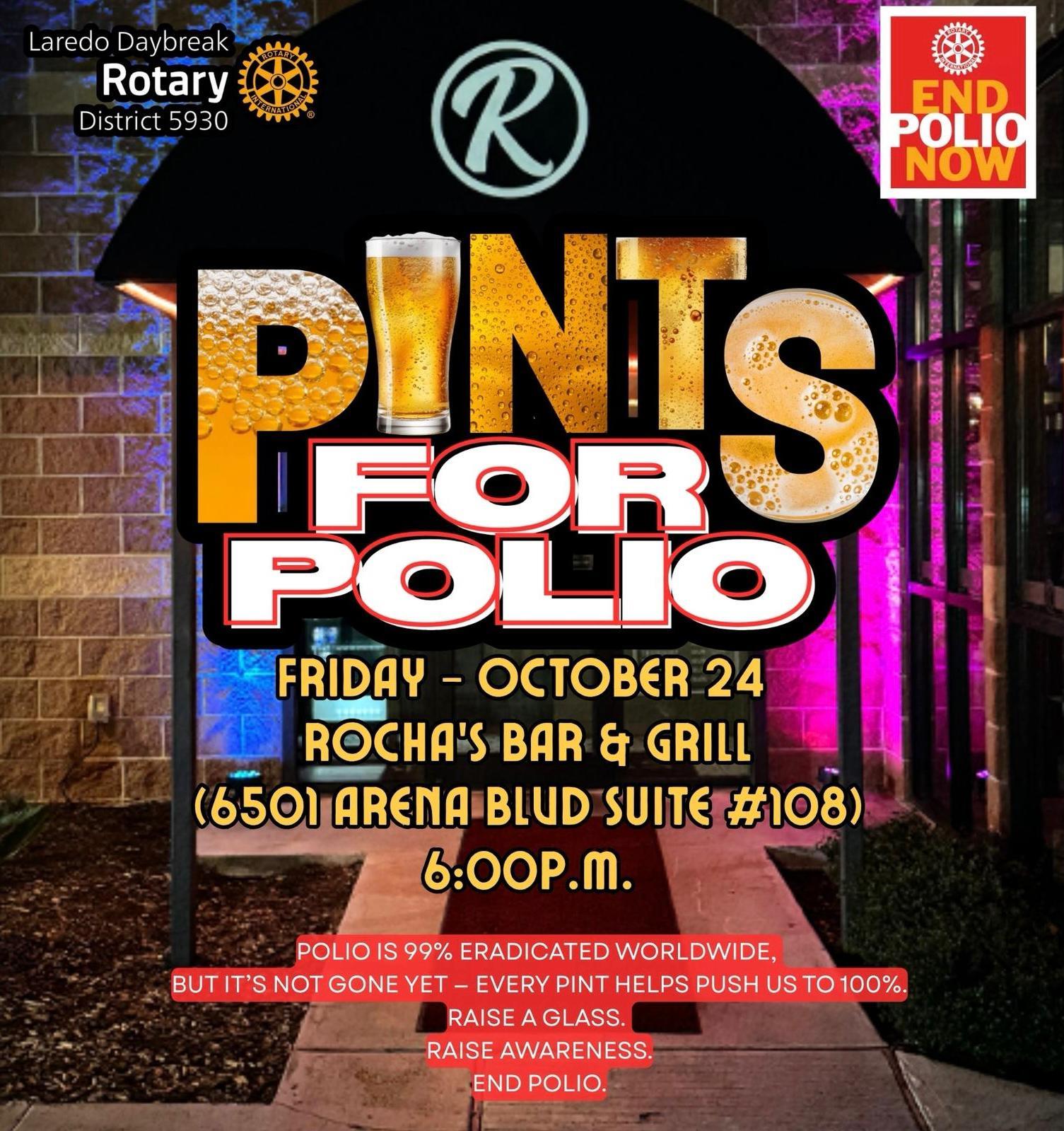 The Laredo Daybreak Rotary Club hosted a Pints for Polio event at Rocha's Bar & Grill on Friday, October 24, 2025.